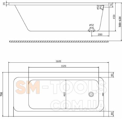 Опис Ванна KOLO Modo 160x70 XWP1160000: