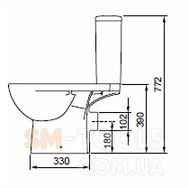 Компакт підлоговий, складається з: Унітаз з горизонтальним випуском Зливний бачок 6/3 л з нижнім підводом води Сидіння з кришкою, із матеріалу Duroplast, soft-close, антибактеріальне, кріплення Click2Clean.