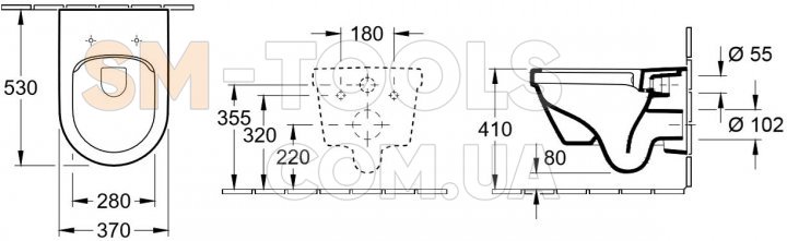 Габарити унітаза (ВхШхГ) 33 х 37 x 53 см