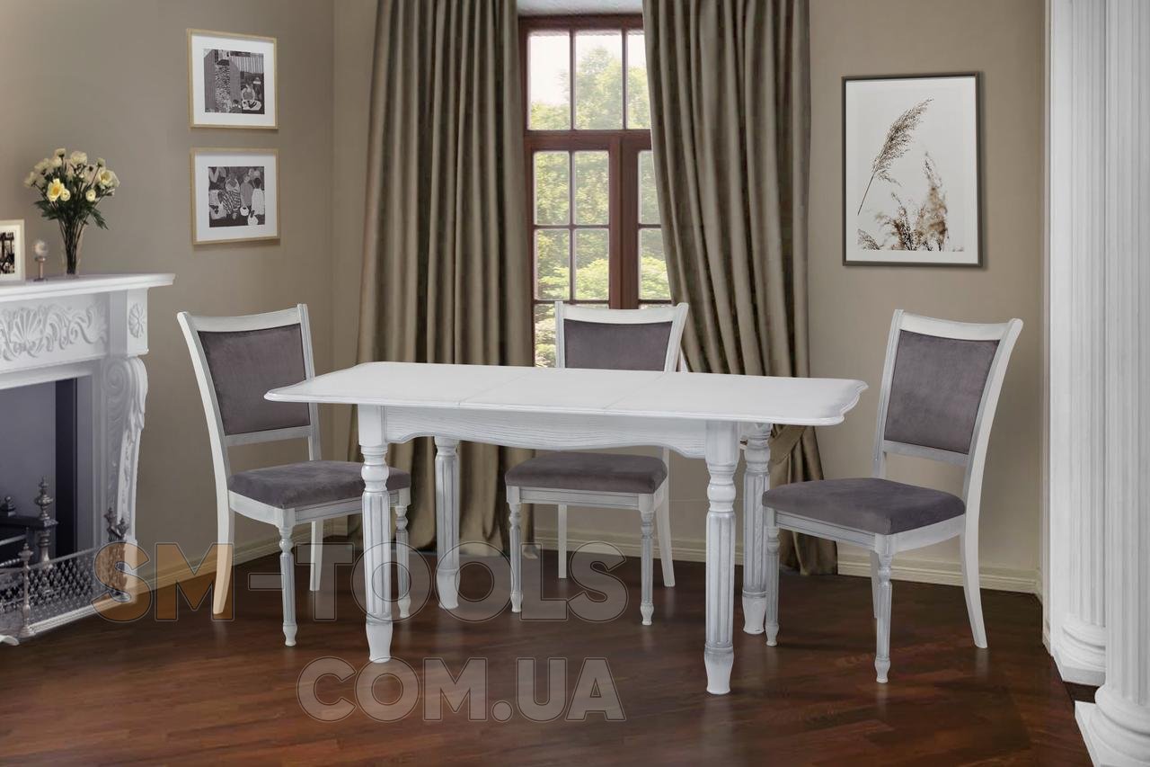 Стіл обідній МІКС-меблі Венеція 140-180 білий/срібна патина