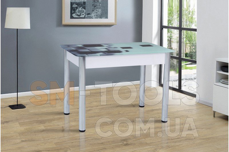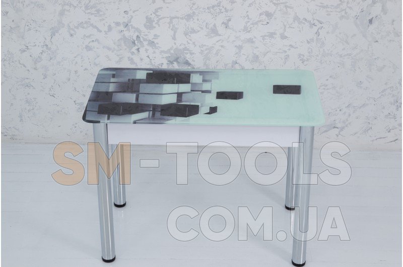 Цвет: Ножки: металл хромированный; Столешница: Стекло с фото печатью "Кубики".