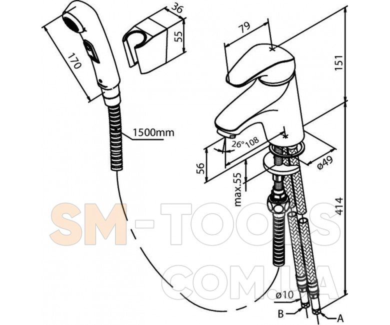 Одинважільний змішувач для умивальника з гігієнічним душем