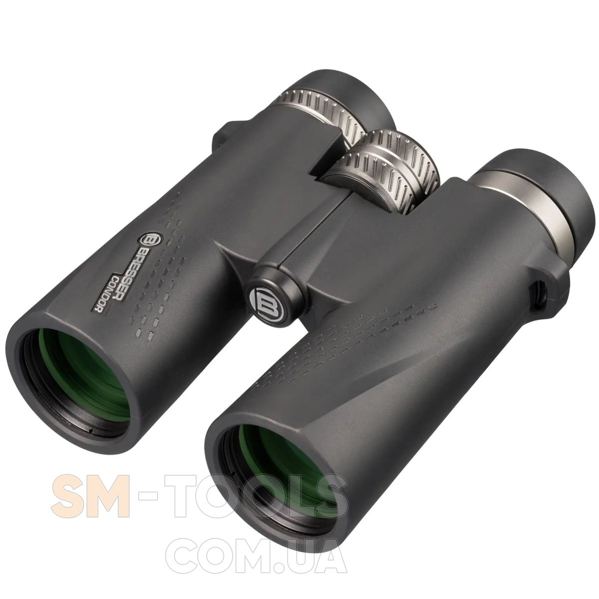 BRESSER Condor 10x42 - чрезвычайно легкий бинокль, и благодаря своей водонепроницаемости и азотному наполнению идеально подходит для использования в любых погодных условиях. Наглазники поворотно-выдвижные с несколькими фиксированными положениями дают возможность комфортно вести наблюдения в очках и без них. Диоптрийная коррекция - стандартная. Эта модель оснащена призмами BaK-4 со специальным покрытием UR, которое пропускает в глаза еще больше света. Кроме того, все бинокли Condor полностью покрыты многослойным покрытием для лучшего светопропускания. Окуляры и колесо фокусировки изготовлены из прочного металла.