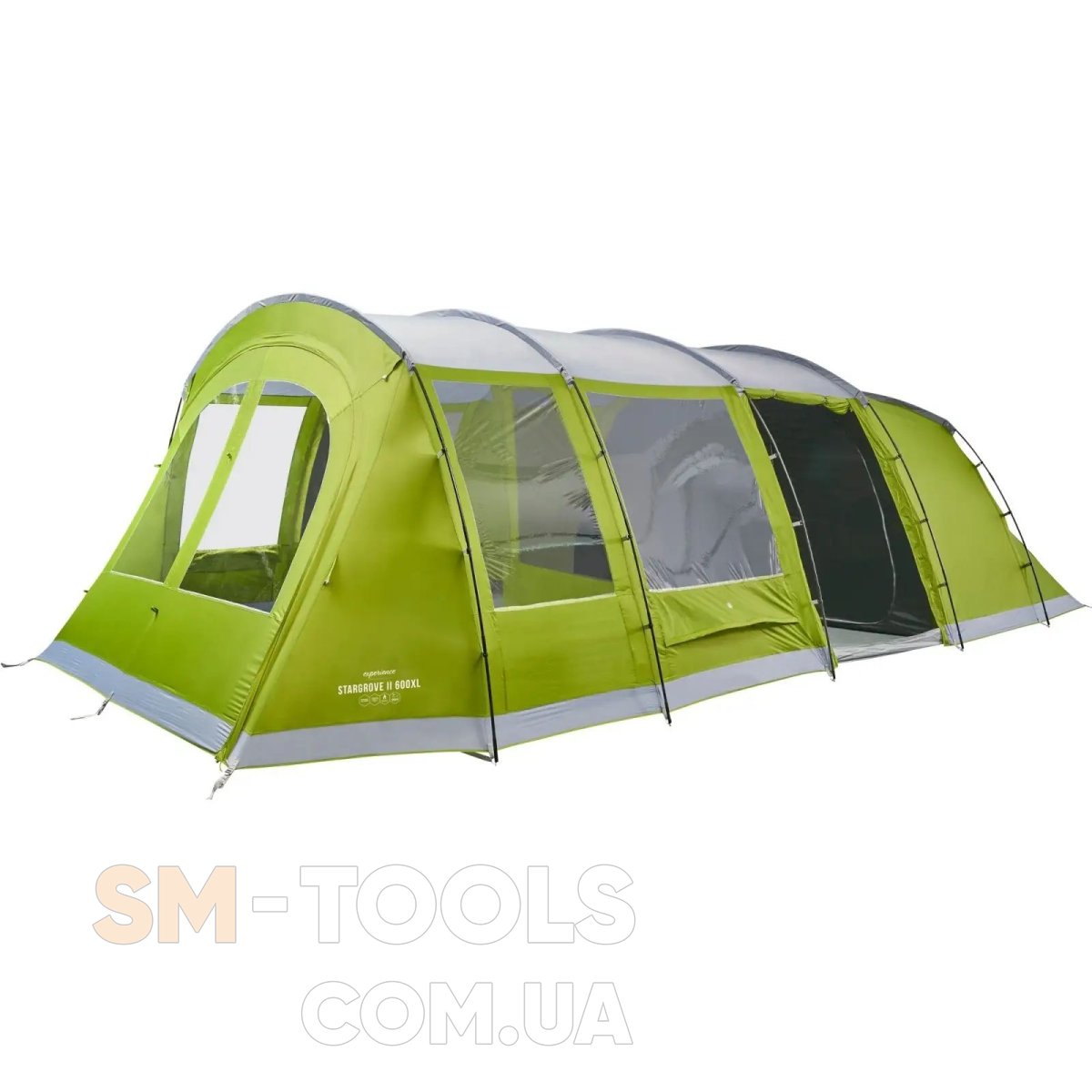 Vango Stargrove II 600XL Herbal (TEQSTARPOH09TAQ) - шестиместная палатка с огромной площадью жилого пространства и обновленными панорамными окнами Diamond Clear, обеспечивающими превосходый обзор окружающей территории. Просторная двойная гостиная с интегрированной стенкой создает уют, способствующий общению и релаксу внутри палатки даже при неблагоприятных погодных условиях. Широкий вход в гостиную оборудован москитной сеткой и обеспечивает постоянный приток свежего воздуха в палатку, а наличие тканевых штор на окнах решает вопрос уединения. Затемненная спальная зона Nightfall Bedrooms трансформируется в три просторных отсека с индивидуальным размером спального места 60 см и подарит возможность крепкого сна во время утреннего солнца. Каркас палатки состоит из пяти дуг Powerflex® для устойчивости при сильном боковом ветре, который вместе с запатентованной системой TBS®II обеспечивает жесткость и надежность всей конструкции. Внешний тент изготовлен из ткани Sentinel Active, специально разработанной для обеспечения отличного качества и минимального веса. В ткань вплетена полиэфирная нить, которая на 97% защищает внутреннее пространство от УФ-лучей. Кроме того, палатка имеет достаточно высокий уровень водозащиты.