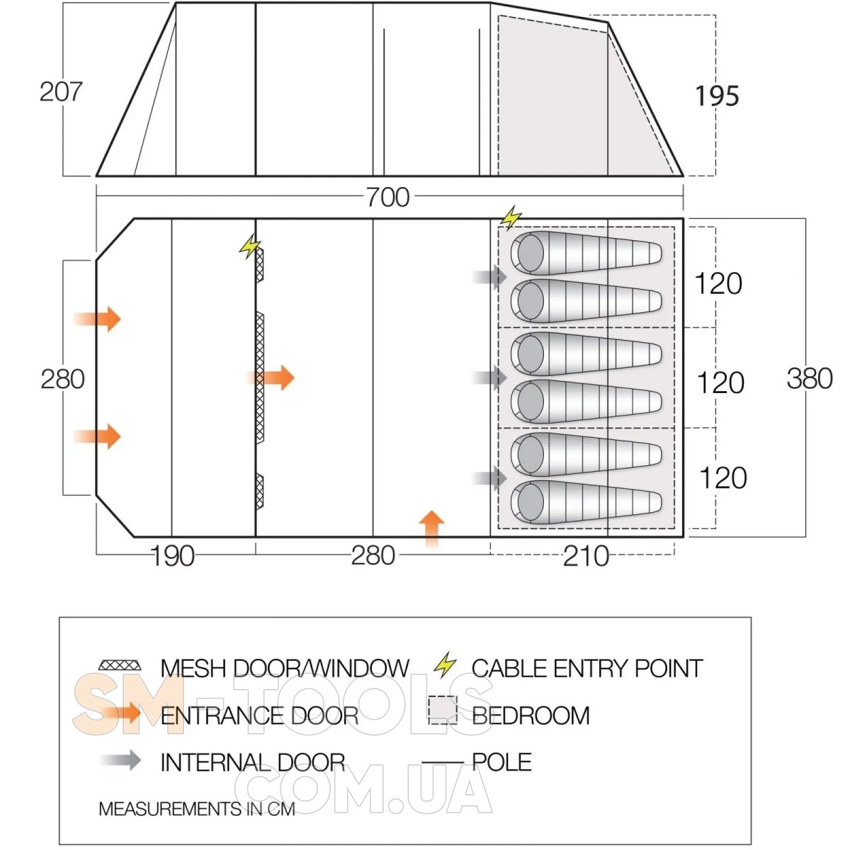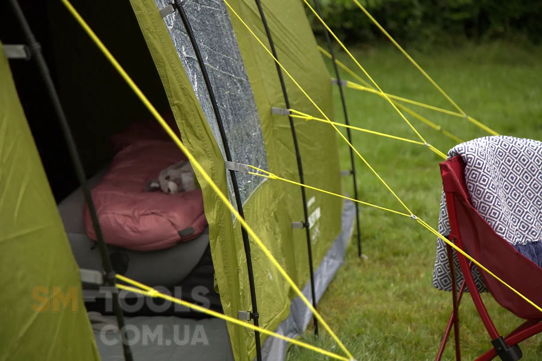 - King Pole Side Door Compatible - встроенные люверсы позволяют использовать специальные телескопические стойки King Poles (не поставляются в комплекте) в виде опор для создания навеса от солнца над входом.