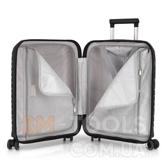 Корпус чемоданов Gabol серии Kiba выполнен из прочного и долговечного материала - полипропилена, что очень важно для чемоданов, перевозимых в багажных отделениях. Чемодан отвечает требованиям, предъявляемым такими компаниями, как EasyJet, SkyUp, British Airways, и некоторыми другими к габаритам ручной клади при провозе в эконом классе. Внутренний объем разделен перегородкой на два отделения и имеет ремни для фиксации вещей внутри.