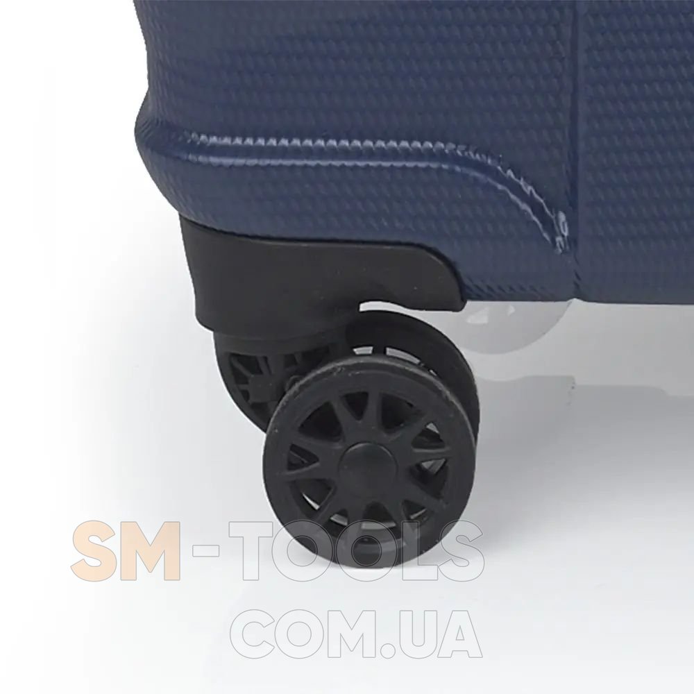 Чемодан оснащен четырьмя полноповоротными, спаренными колесами с возможностью независимого разворота каждого колеса на 360°. Системой предусмотрено равномерное перераспределения нагрузки на каждое колесо, что в свою очередь способствует плавному качению и маневренности чемодана, прилагая при этом минимум усилий. Колеса изготовлены из высокотемпературного термопластичного полиуретана (TPU). Материал обладает прочностью сравнимой с пластиком, гибкостью силикона, а так же имеет повышенную устойчивость к перепадам температур. Отличительной особенностью колес из TPU материала является снижение шума до минимума при качении чемодана по неровной поверхности. Благодаря устойчивости к истиранию материал колес отличается длительным сроком эксплуатации.