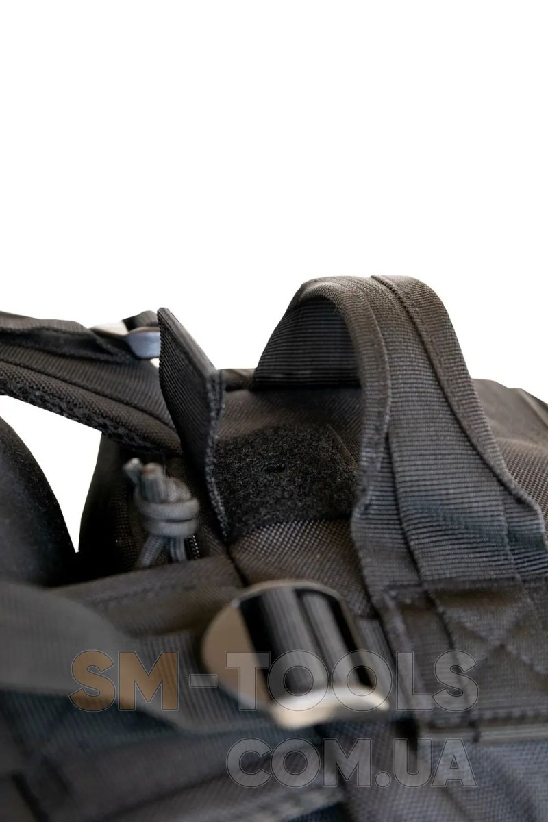 Завдяки нашитим із зовнішньої сторони стропам та петлям системи MOLLE рюкзак можна доповнювати необхідним спорядженням.