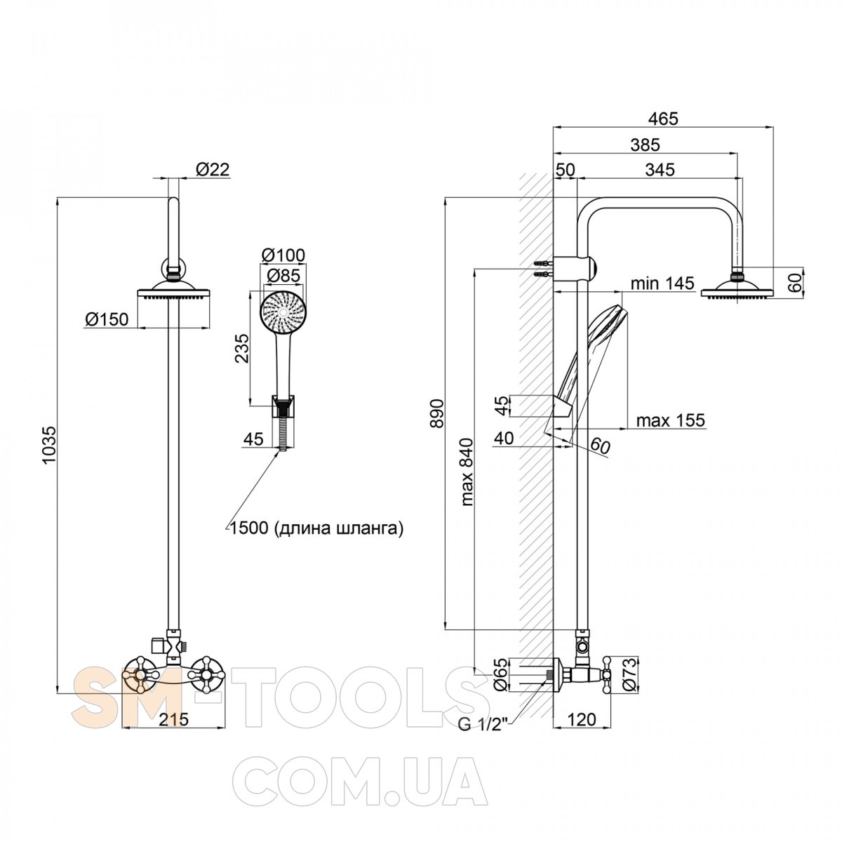 Кількість режимів ручний душ: 1. верхній душ: 1