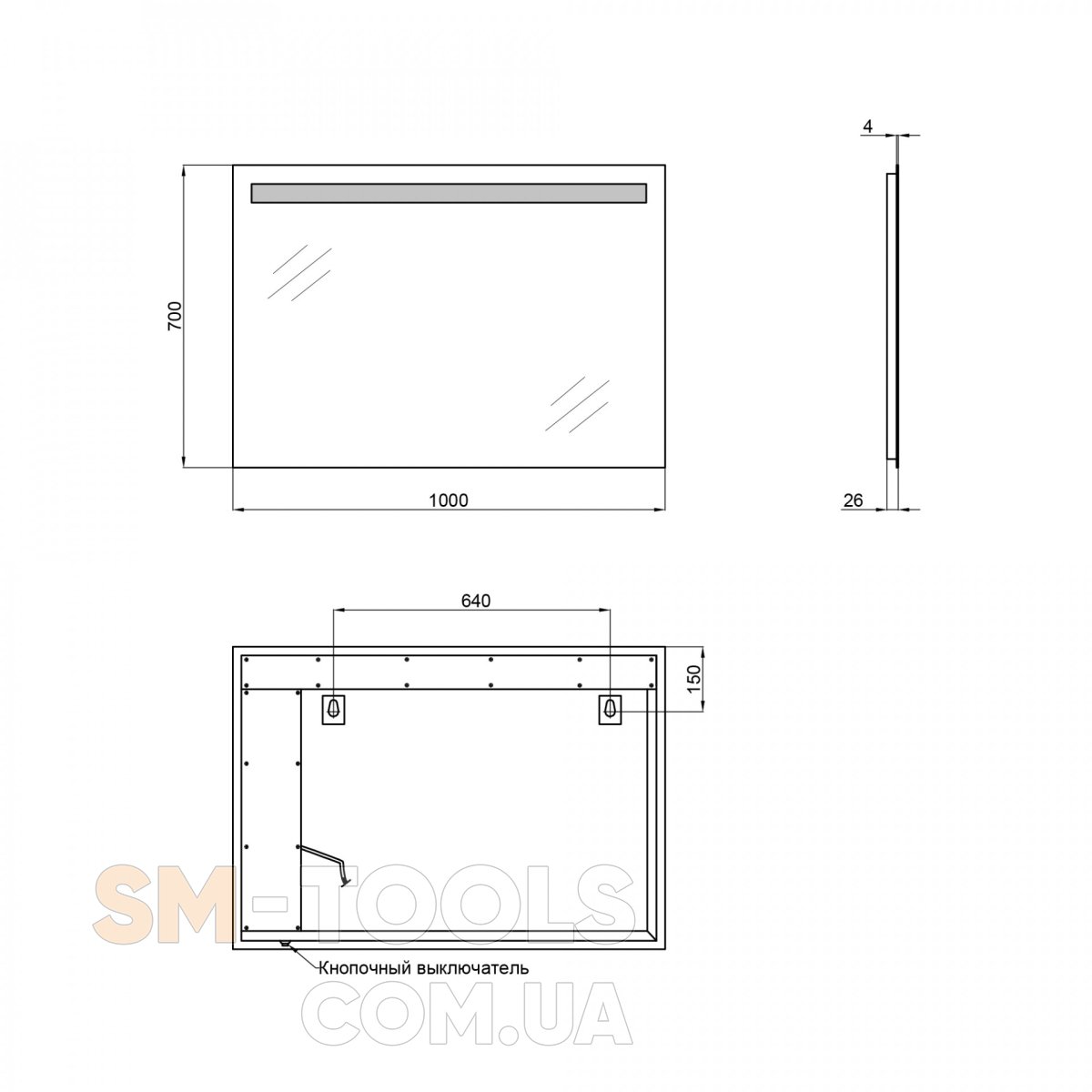 Характеристики Дзеркало Qtap Mideya Modern 1000х700 QT2078141470100W: