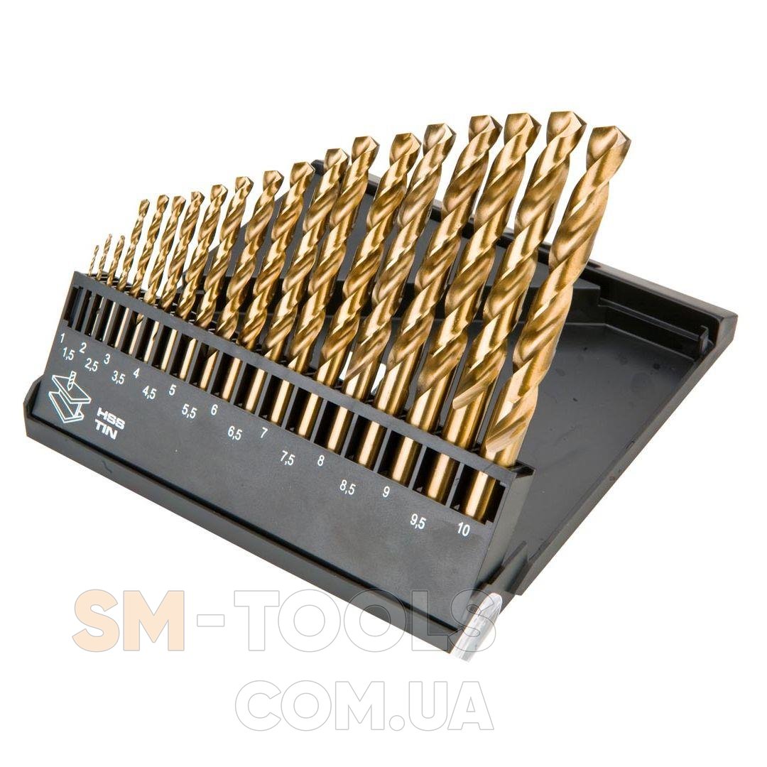Свердла по металу GRAPHITE HSS-TiN 1.0-10.0 мм зі швидкорізальної сталі, 19 штук в наборі. Тип патрона - циліндричний.