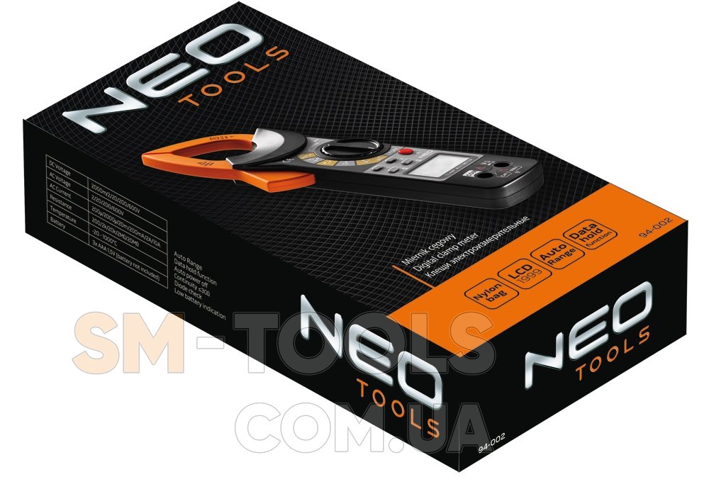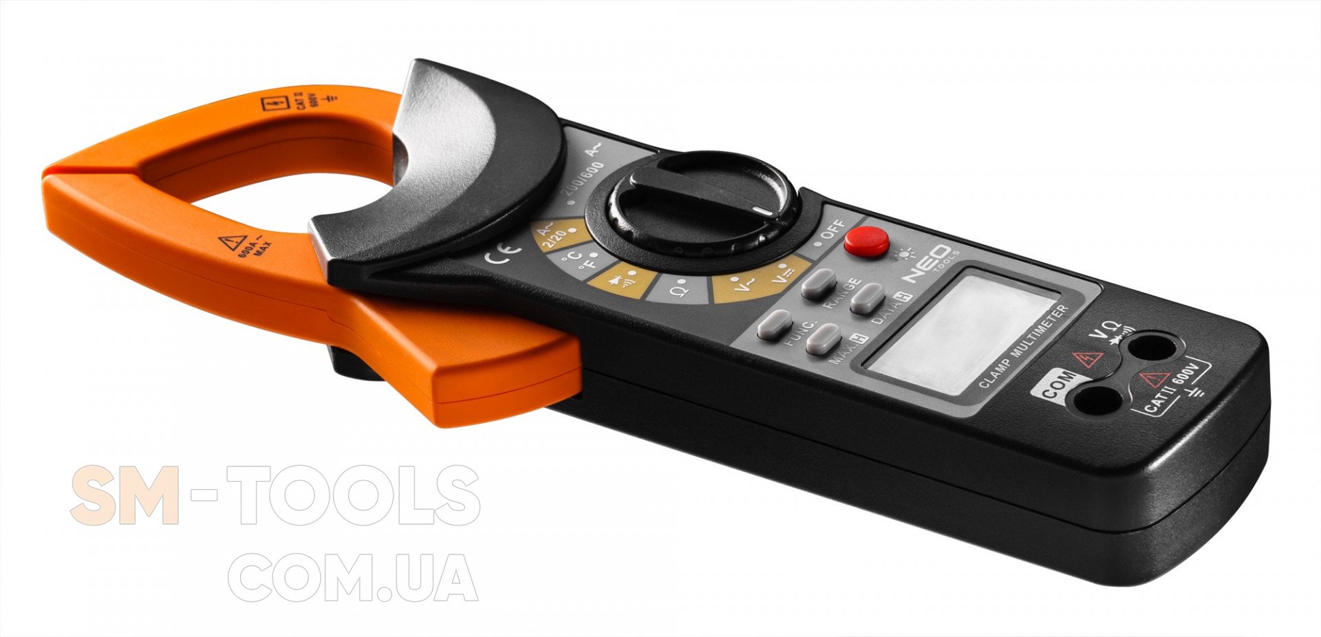 Кліщі електровимірювальні NEO TOOLS служать для вимірювання значення постійної і змінної напруги, значення змінного струму, опору ланцюга, температури, перевірки діодів, а також для прозвонки ланцюга. З автоматичним перемиканням діапазонів і збереженням останніх свідчень. Корпус виготовлений з пластмаси високої якості. Рідкокристалічний дисплей з підсвічуванням дозволяє працювати при слабкому освітленні. Нейлоновий чохол полегшує зберігання і транспортування. Відповідність європейським стандартам в галузі безпеки підтверджує сертифікат CE. Бренд NEO виправдовує очікування професіоналів.