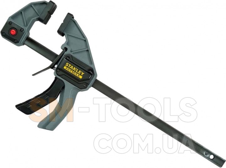 Струбцина швидкозатискна автоматична STANLEY FATMAX призначена для надійної фіксації заготовок. Конструкція з посиленого нейлону і сталі забезпечує високу міцність і тривалий термін служби. Можливість роботи однією рукою. Гумові знімні накладки захищають деталі від пошкоджень. Затискний механізм працює за принципом пістолетного, що дозволяє швидко зафіксувати деталь.