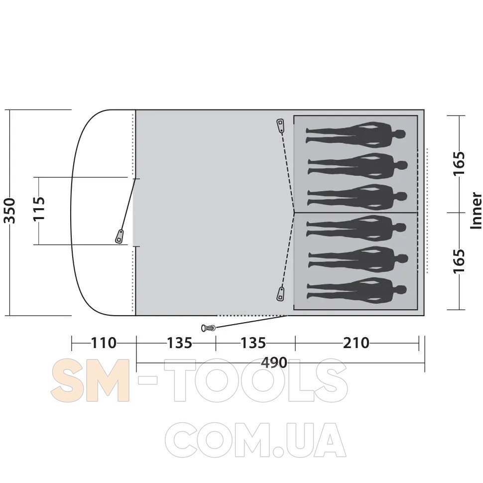 - Затемненные стены и потолок внутренней палатки уменьшают проникновение света, что способствует хорошему сну.
