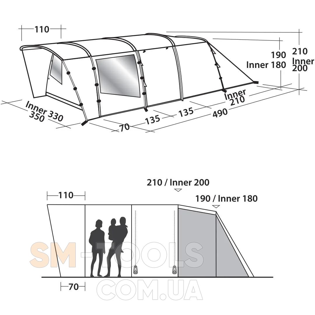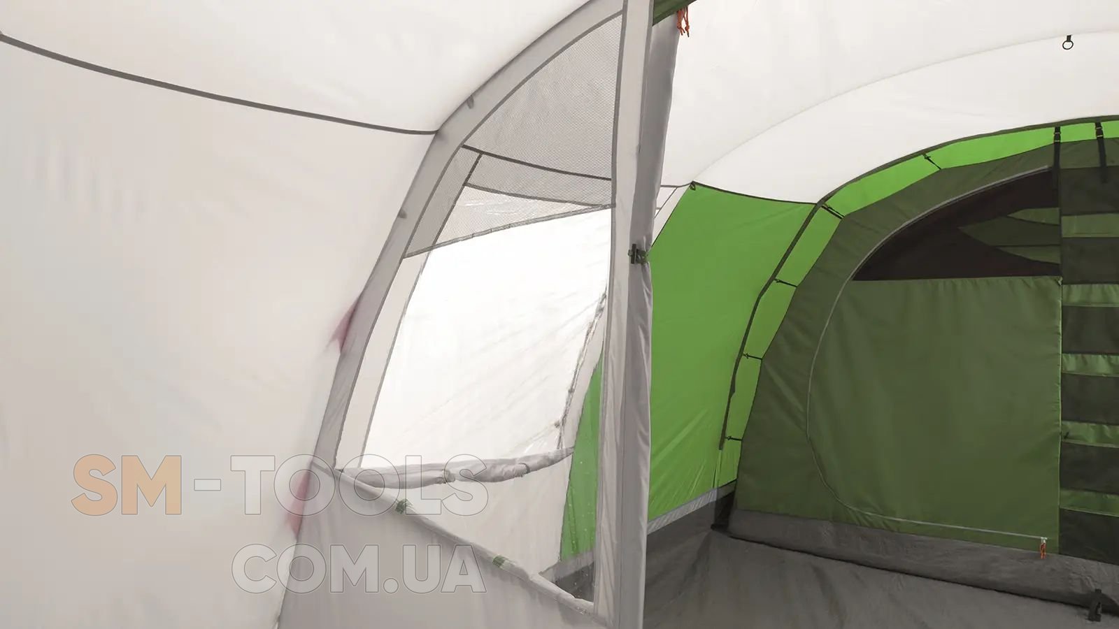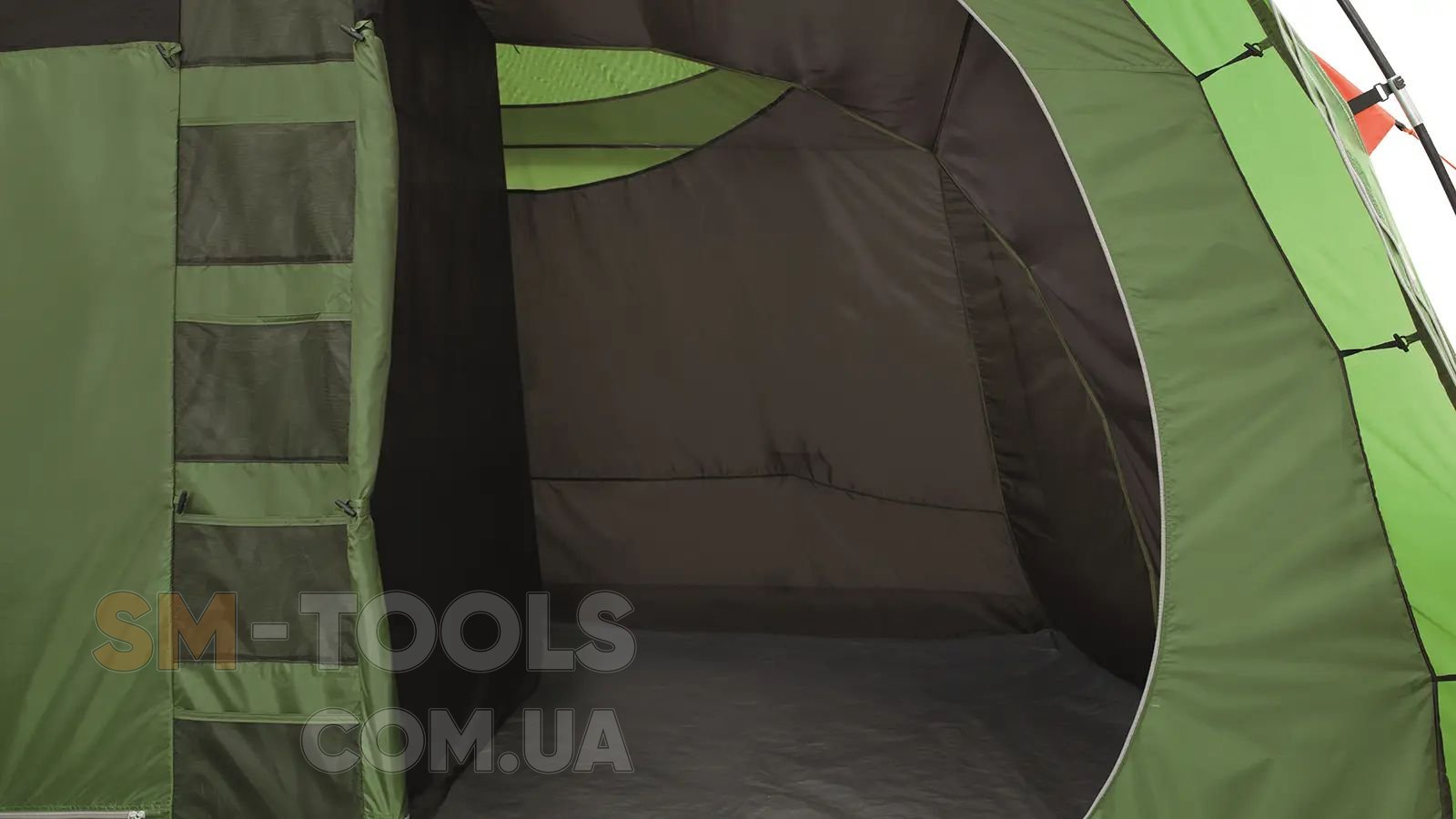 Easy Camp Palmdale 600 Forest Green (120371) - семейная туннельная палатка с огромной жилой зоной и двумя затемненными раздельными спальнями со съемной перегородкой. Большие окна со шторами создают ощущение простора внутри, а передний навес защищает вход от дождя. Высокие потолки в жилой зоне образуются за счет предварительно изогнутых дуг, что позволяет стоять взрослому человеку в полный рост. Боковая дверь из москитной сетки, а также вентиляционные окна во фронтальной и тыльной части палатки обеспечивают циркуляцию и приток свежего воздуха. Сон без насекомых гарантируют внутренние двери спален с москитной сеткой в их верхней части. Отсек на молнии позволяет проложить электрокабель и организовать кемпинговую кухню внутри палатки. Полностью вшитый пол тамбура обезопасит от сквозняков и сырости. Easy Camp Palmdale 600 Forest Green (120371) идеально подходит для комфортного отдыха с семьей и друзьями.