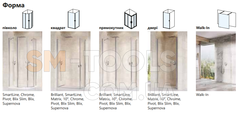 Характеристики варіантів душових кабін Supernova SKKP6: