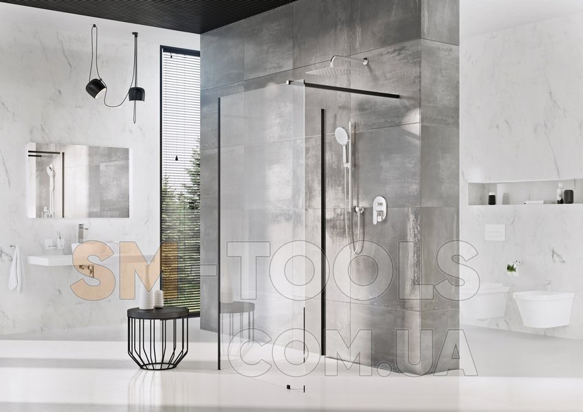 Набір металевих деталей для душової кабіни Walk-In Wall 100 та Walk-In Corner 120x90, де він визначає ширину входу 90 см.