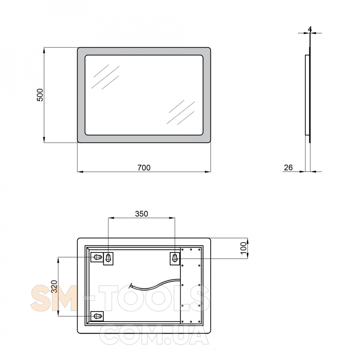 Дзеркало Qtap Aquarius 500х700 з LED-підсвіткою, Reverse QT217814198120W