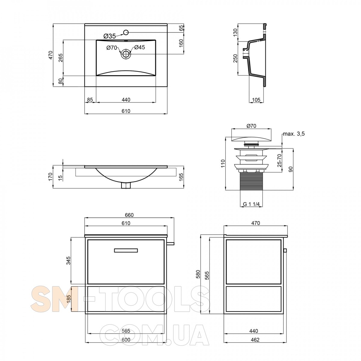 Комплект qtap taurus 600х580х437 whitish oak тумба підвісна + раковина врізна qt2472tpt603wo виконана в лаконічному стилі, який доповнить дизайн будь-якої ванної кімнати. раковина виготовлена з якісної кераміки білого кольору, вона має отвір під сифон і перелив. корпус тумби кольору білого дуба виготовлений з лдсп, фасадна частина з мдф. виріб оснащений зручним і містким висувним ящиком з механізмом доводчика, а так само стильною полицею.