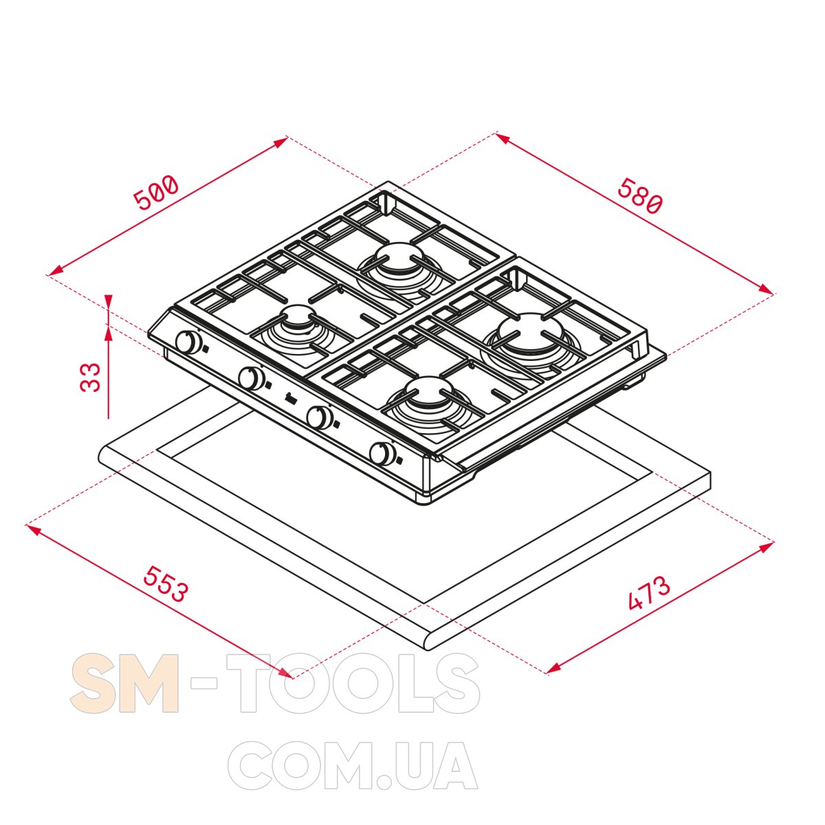 - Розміри вбудовання - ширина (мм): 553