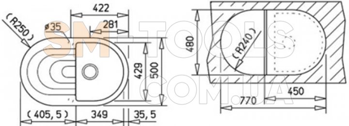 - Ширина основної чаші (мм): 429