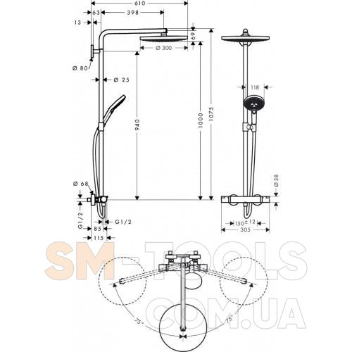 Душова система Hansgrohe Raindance Select S S300 2jet Showerpipe 27133400