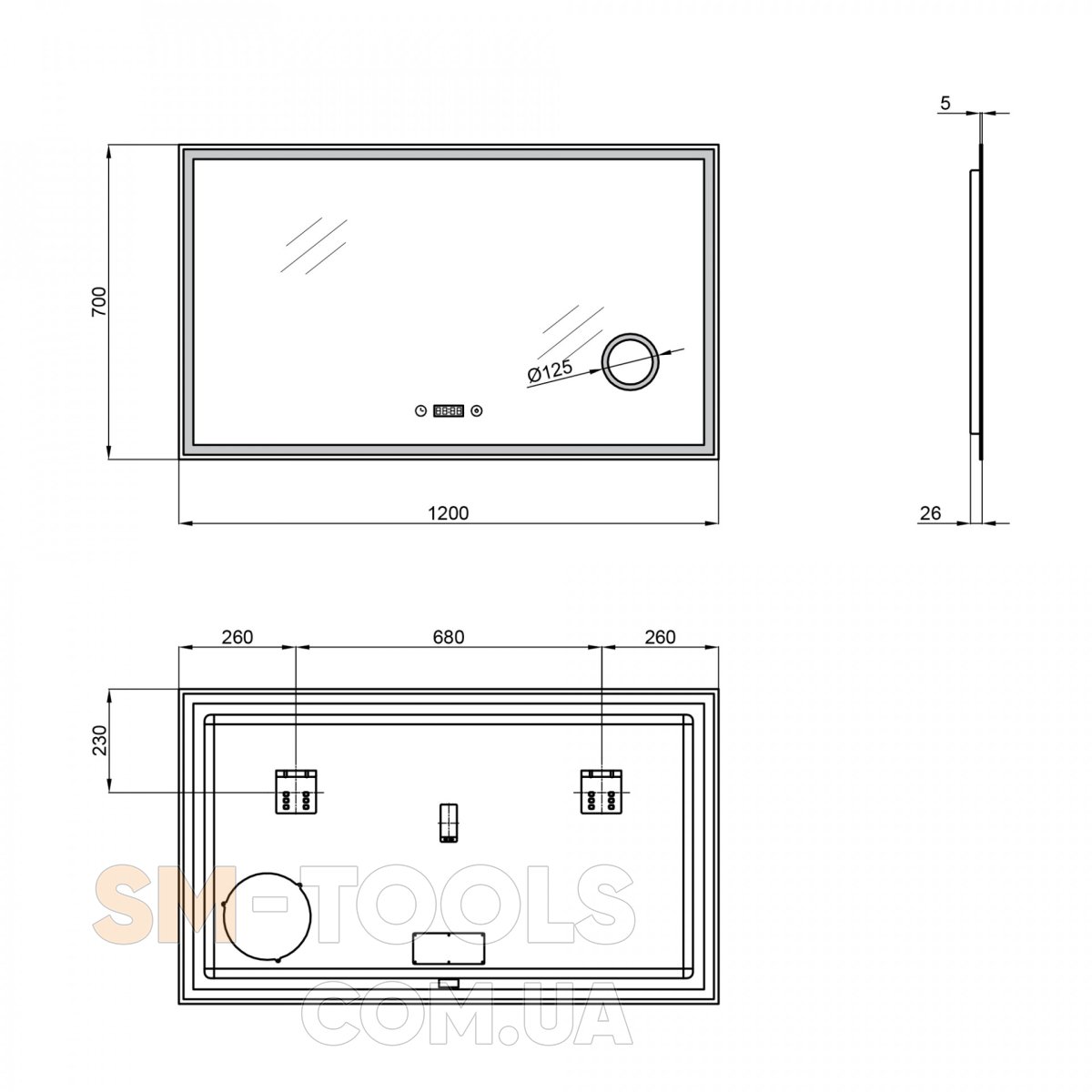 Комплектація Дзеркало Qtap Stork 1200х700 з LED-підсвіткою QT1578142270120W:
