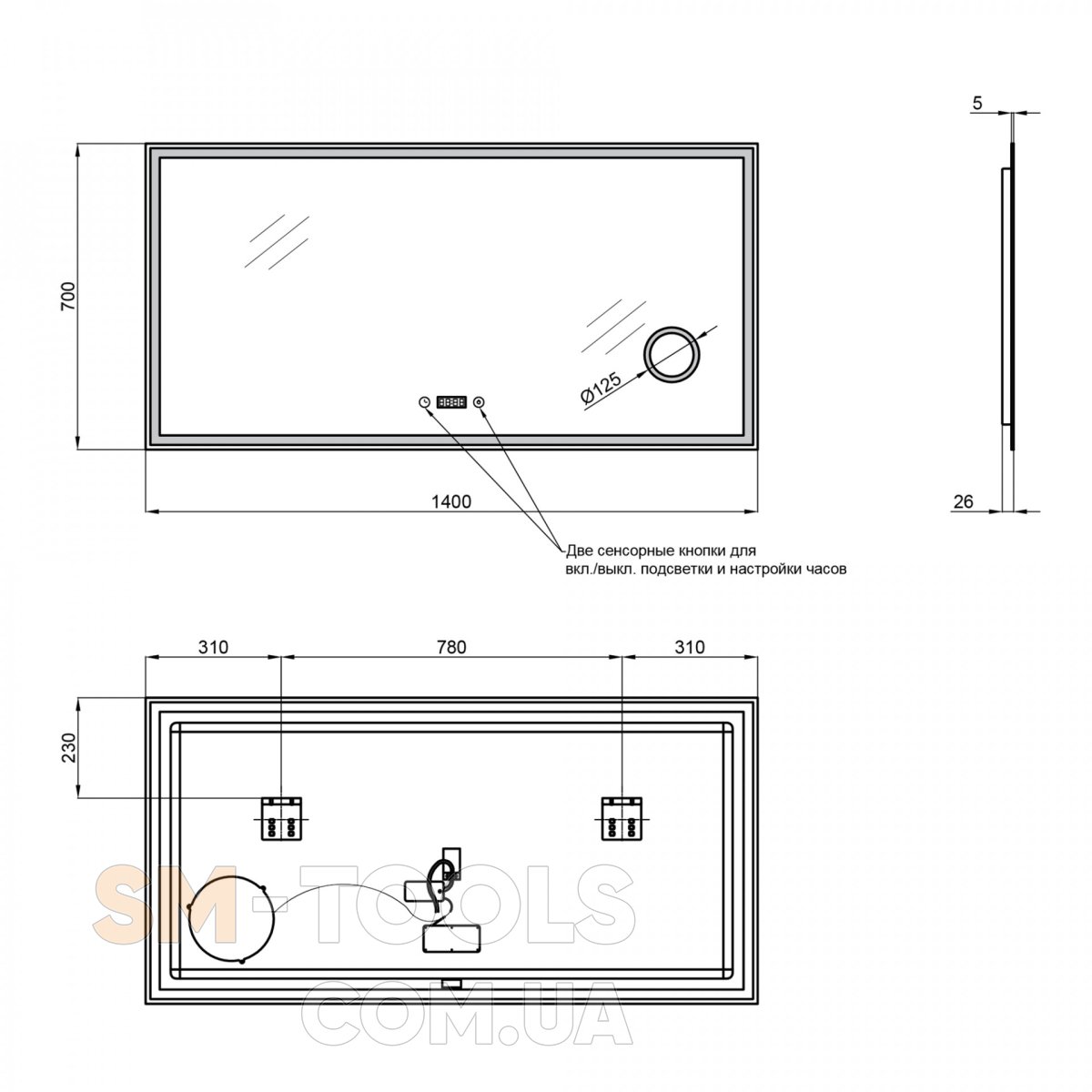 Комплектація Дзеркало Qtap Stork 1400х700 з LED-підсвіткою QT1578142270140W: