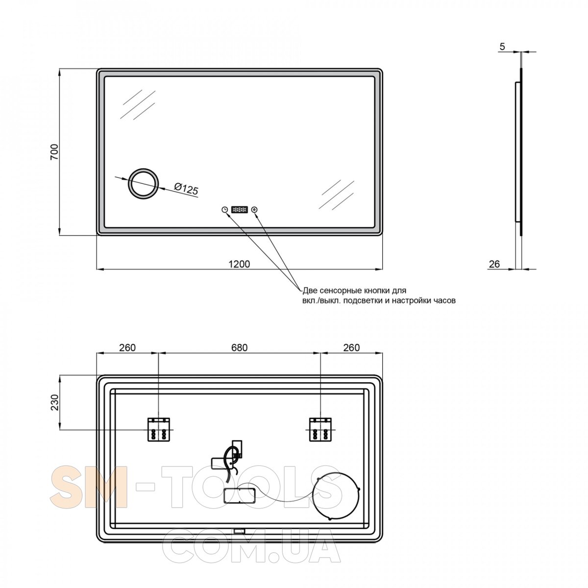 Комплектація Дзеркало Qtap Crow 1200х700 з LED-підсвіткою QT0578141670120W: