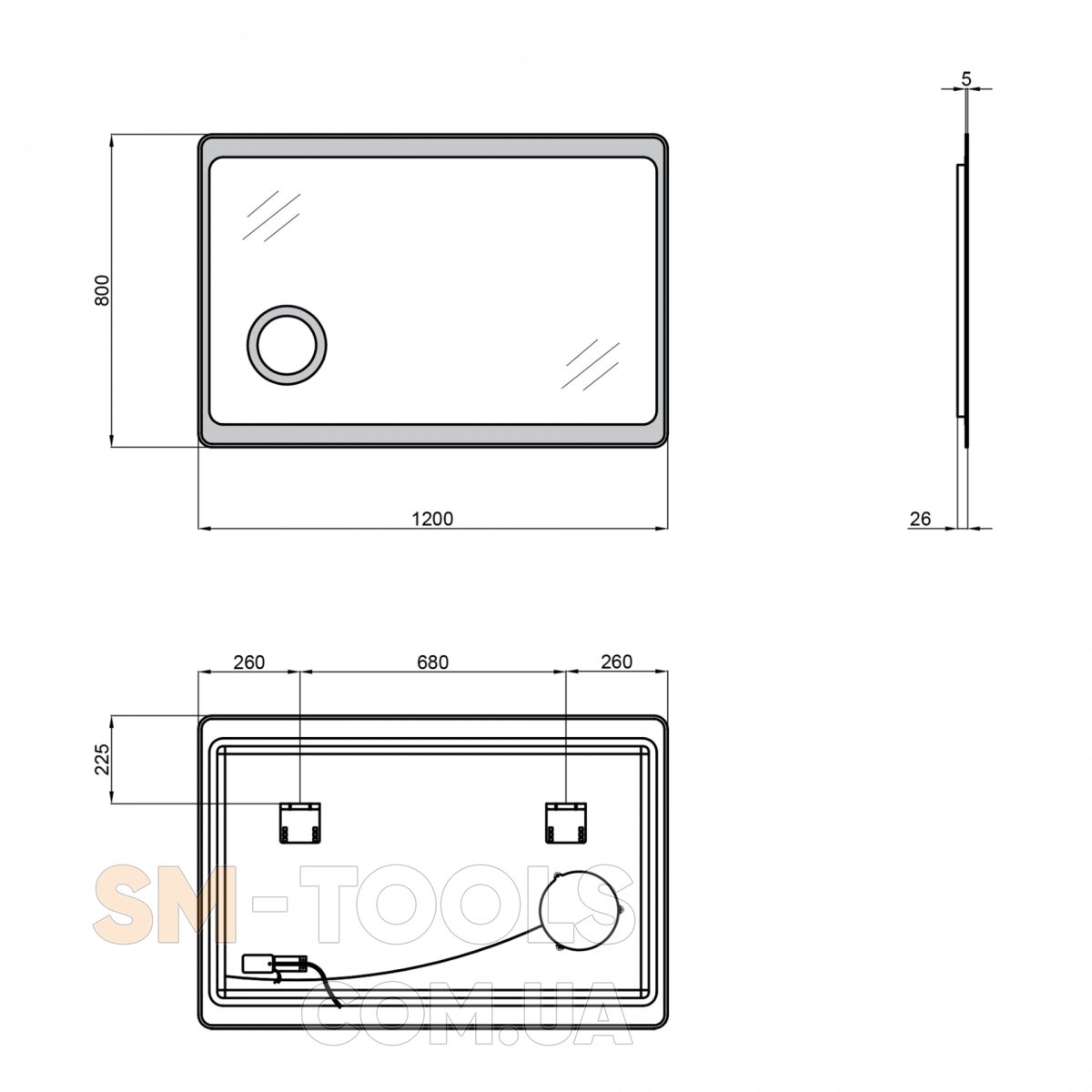 Комплектація Дзеркало Qtap Aquarius 1200х800 з LED-підсвіткою QT2178141980120W: