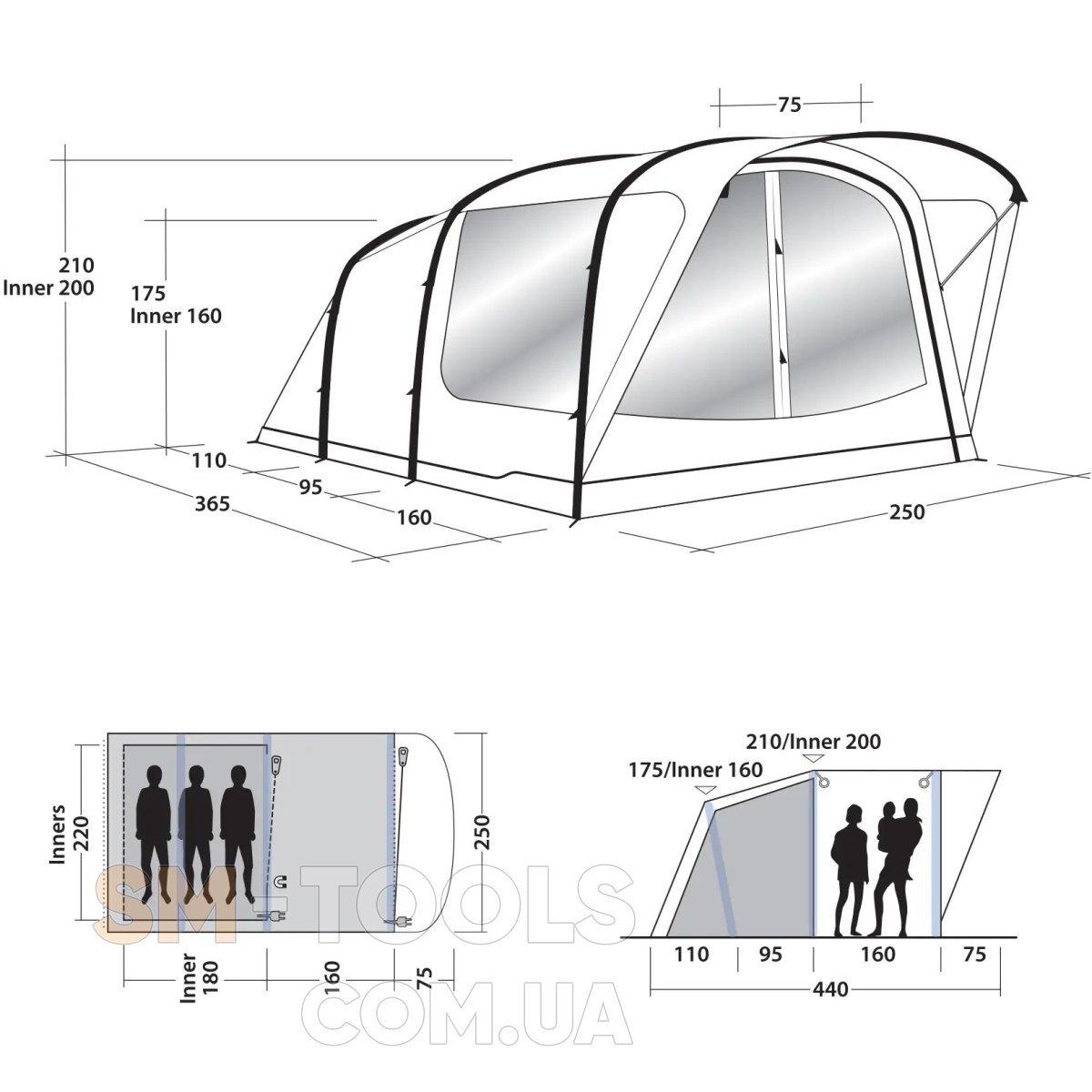 - Dark Inner - темная ткань внутренней палатки уменьшает проникновение света для улучшения качества сна.