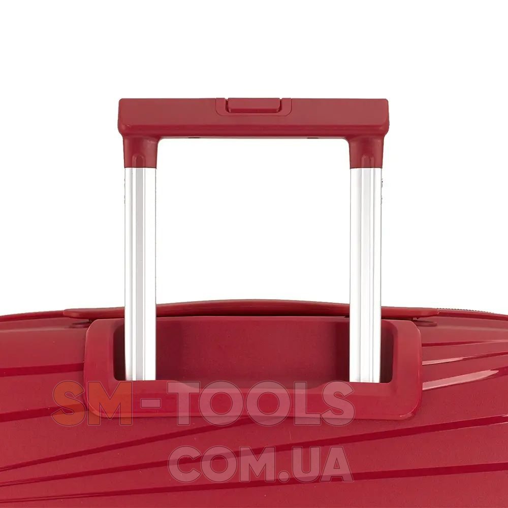 - Ручка с гелиевой вставкой в верхней части чемодана для транспортировки в вертикальном положении.