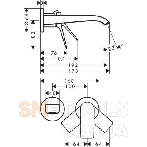 Складається з: змішувач для раковини, одноважільний, прихованого монтажу, настінний, злив / перелив