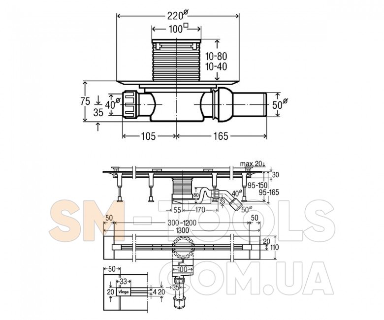 Характеристики Душовий канал + трап горизонтальний Viega Advantix Vario 704353+583217:
