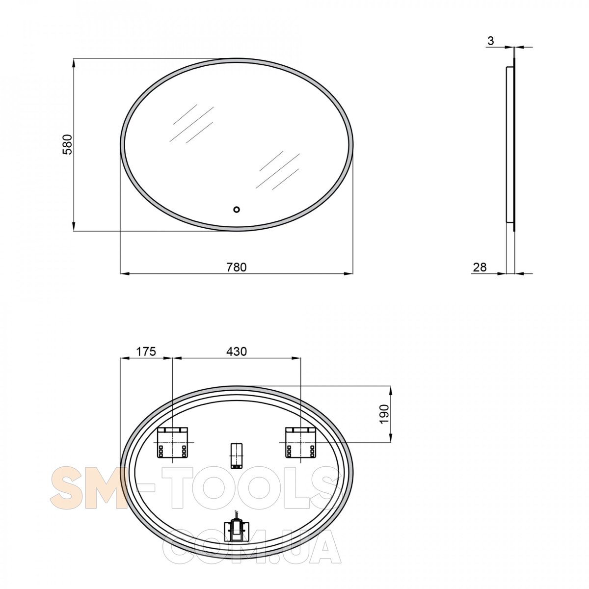 Комплектація Дзеркало Qtap Virgo 780х580 з LED-підсвіткою QT18783502W:
