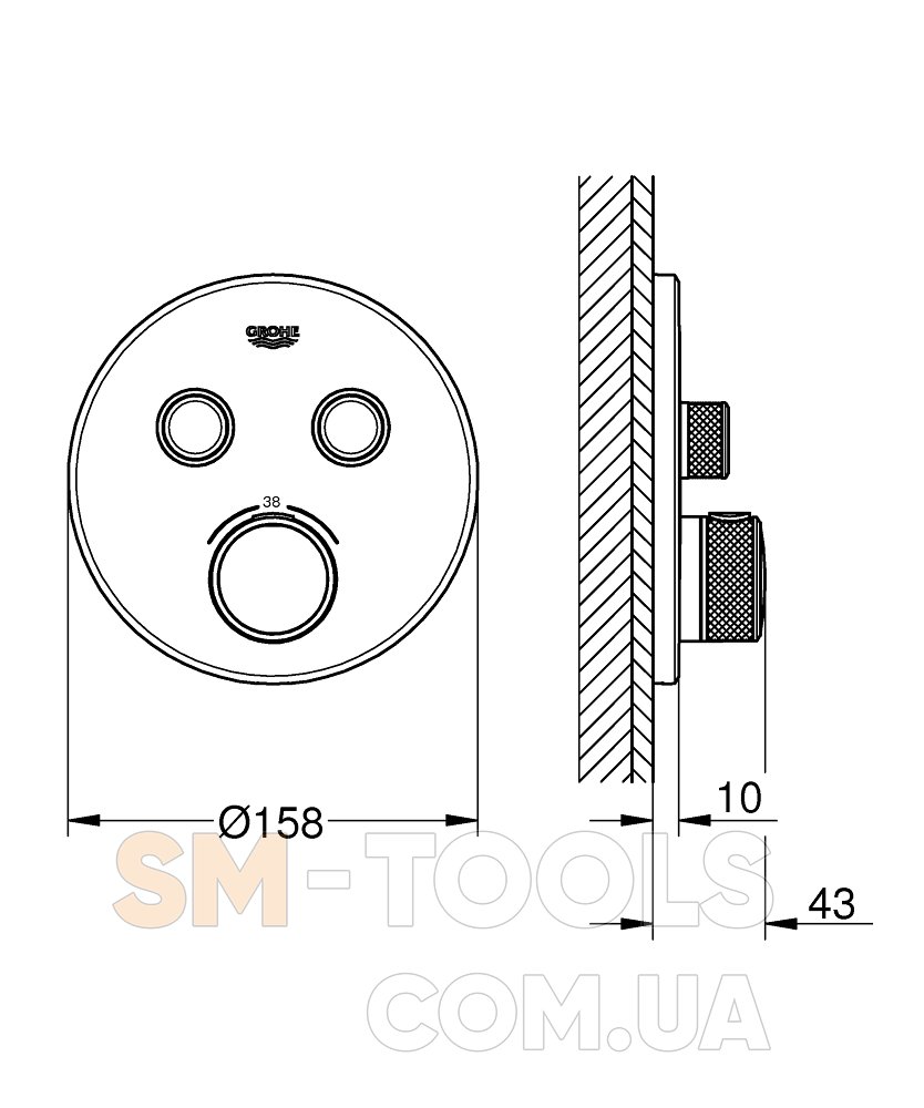 - - GROHE SmartControl® інноваційне управління - вмикається натисканням кнопки Вкл/Викл, збільшення водного потоку повертанням рукоятки від режиму EcoJoy (мінімальний) до Full Flow (максимальний)