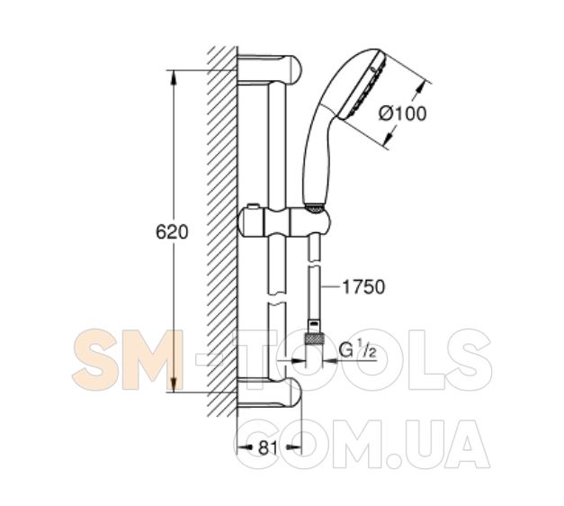 Комплектація: ручний душ, ковзаючий тримач, штанга, шланг