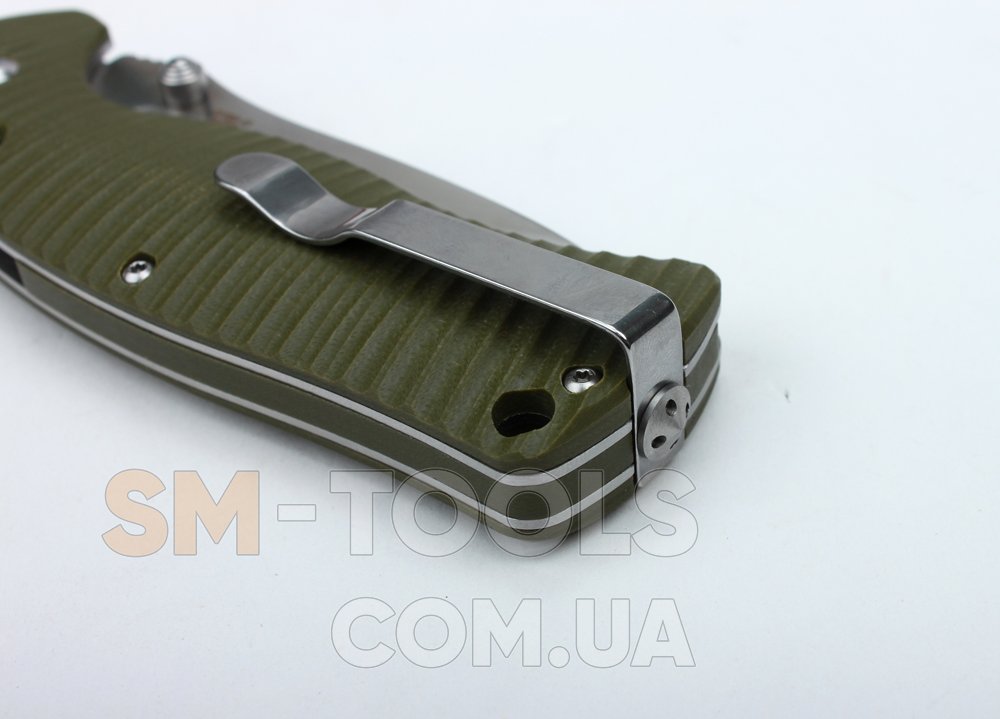 - рифлена рукоятка з міцного пластику G10;