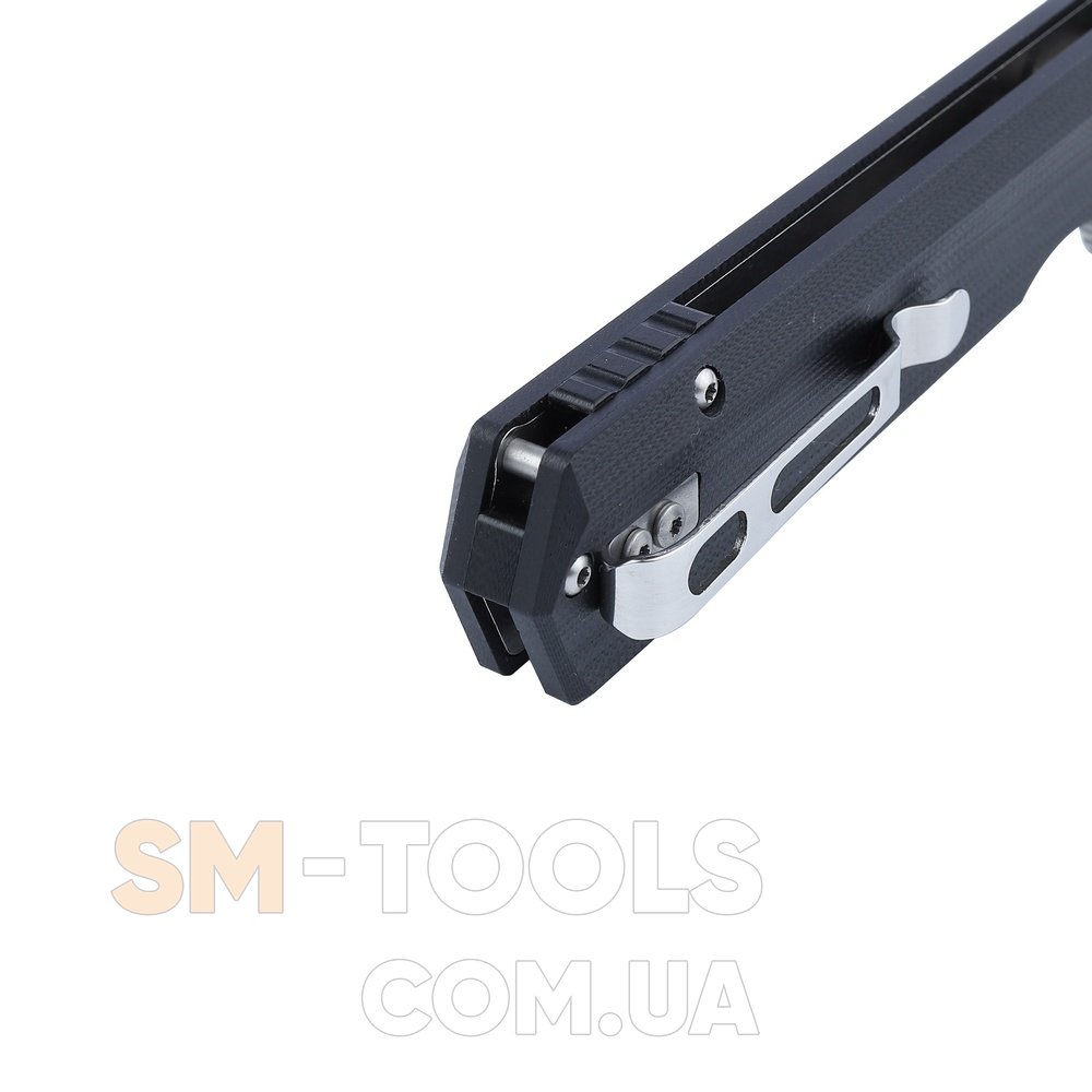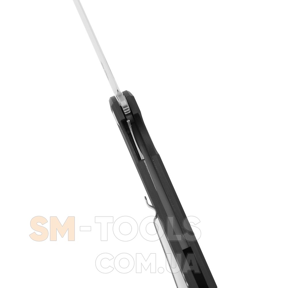 У моделі Firebird FH11 немає двостороннього шпенька або спеціальної кнопки для відкриття. Лезо витягується за допомогою спеціального «плавця», що є частиною самого клинка. У відкритому вигляді ця ж деталь виконує роль своєрідної гарди, захищаючи долоню користувача від випадкового зісковзування. А от фіксація ножа у відкритому вигляді здійснюється за допомогою замка Liner-lock.