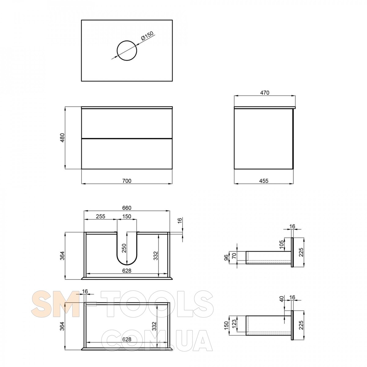 Характеристики Тумба підвісна Qtap Tern Matt black зі стільницею QT1779TPL702MB: