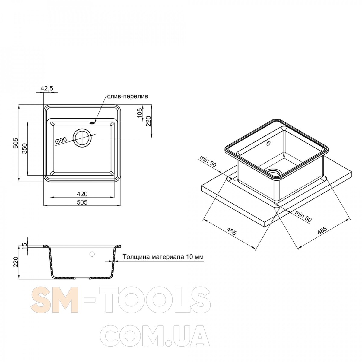 Характеристики Кухонна мийка Qtap CS 5151 Beton (QTCS5151BET):