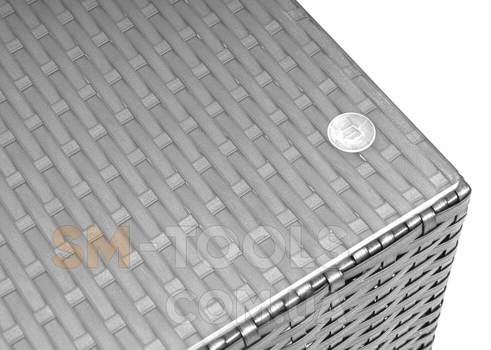 Основна конструкція виготовлена з найміцнішої сталі, яка має чудовий рівень стійкості до ранньої корозії, передчасного зношування, підвищеної вологості, сильного ультрафіолету, перепадів температур та інших зовнішніх факторів. Верхнє покриття, зроблене з добротного техноротанга, добре справляється з будь-якими погодними умовами, прекрасно протистоїть забрудненням та надзвичайно просте в очищенні.