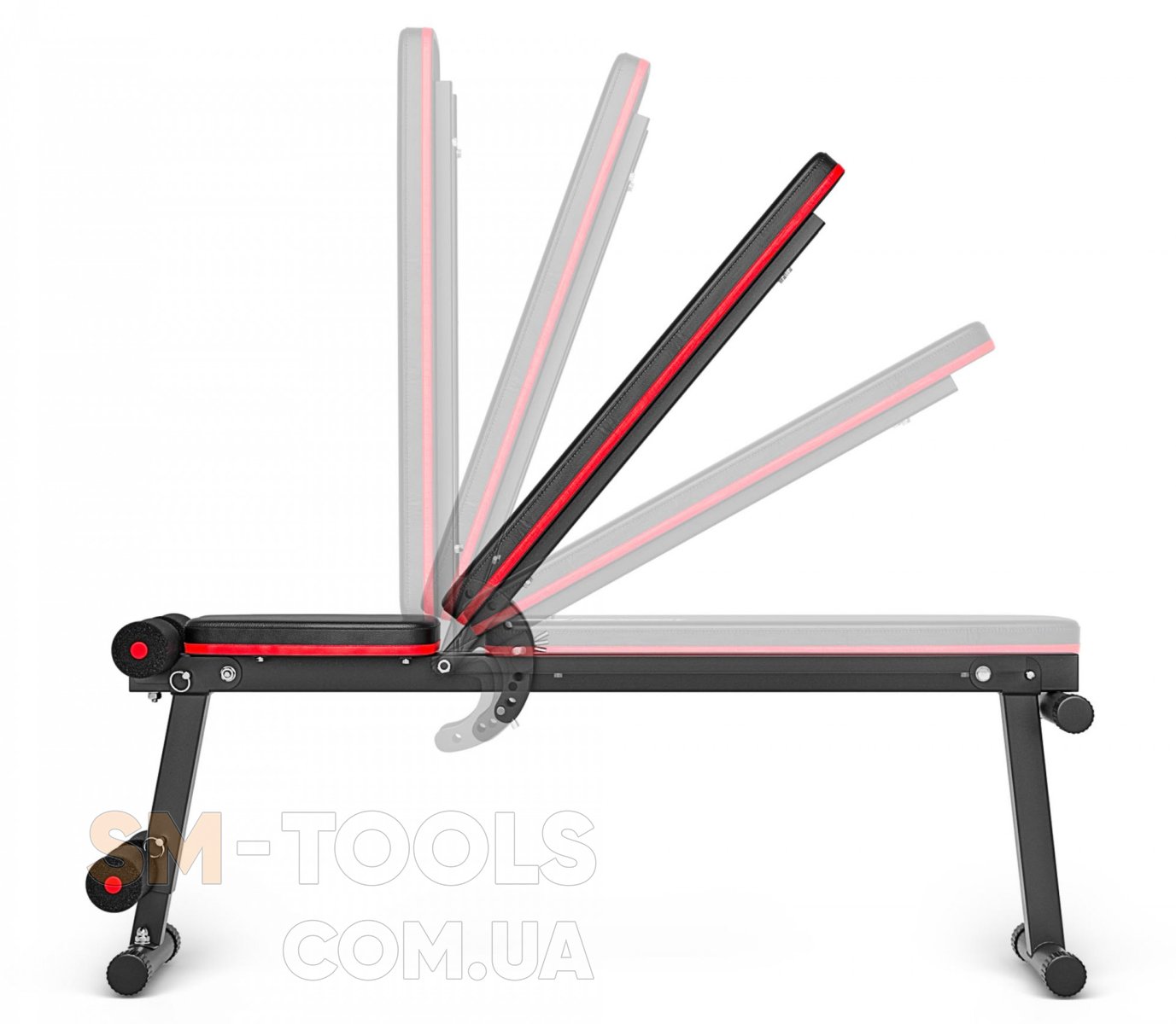 Лавка має п'ятиступінчасте регулювання спинки, що дозволяє тренувати різні групи м'язів. Додатковою перевагою цієї моделі є можливість складати її після тренування. Ви отримуєте в своїй квартирі повноцінний силовий тренажер, який можна прибрати в перервах між тренуваннями.
