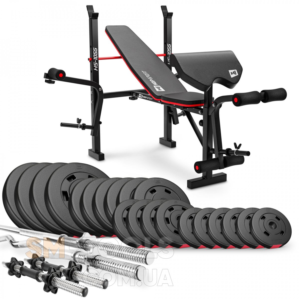 Набір Premium 105 кг зі штангами і лавою HS-1055 - ідеально підібраний комплект з функціональною лавкою і найкращим поєднанням кількості і ваги дисків, щоб організувати вдома повноцінний спортзал для силових тренувань.
