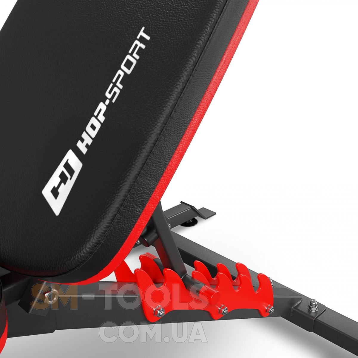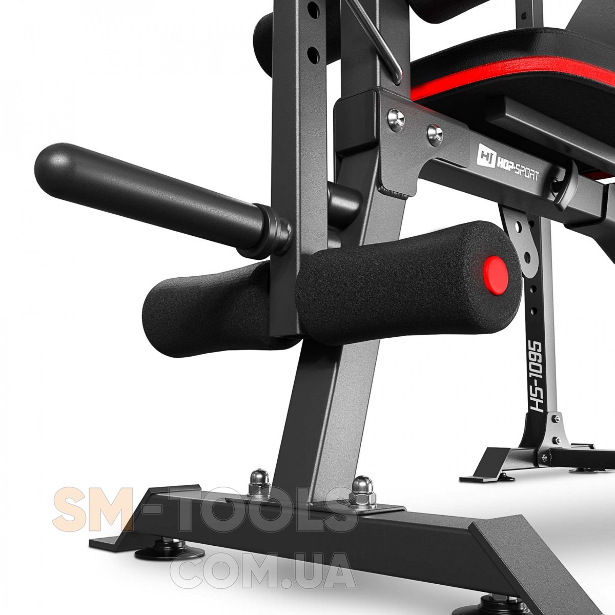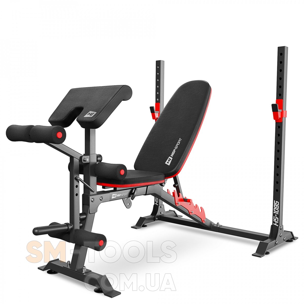 Тренувальна лава HS-1095 з партою Скотта від Hop-Sport використовується для комплексних силових тренувань вдома. Міцна сталева конструкція забезпечує комфорт і безпеку під час тренування. У моделі HS-1095 є можливість регулювання окремих частин лавки - спинки, сидіння, жиму ногами, парти Скотта. Це дозволяє виконувати різні вправи і адаптувати обладнання до своїх індивідуальних потреб. Спинку можна поставити рівно і з від’ємним нахилом. Завдяки регульованому сидінню вправи на лаві повністю безпечні.
