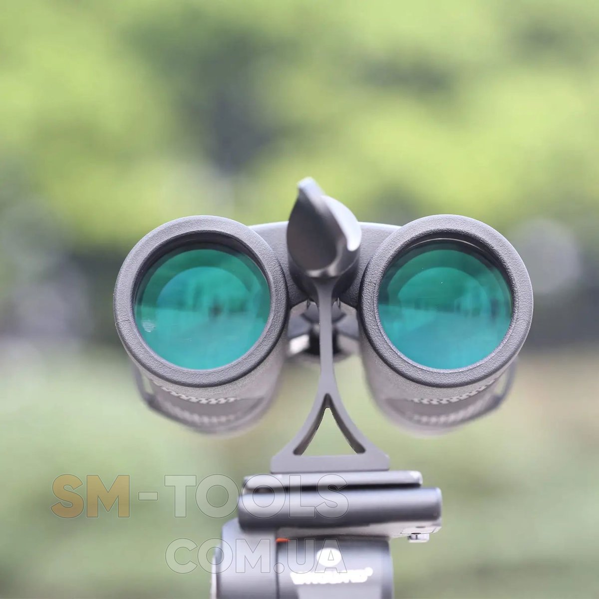 Tripod MountableTripod mountable. Не дивлячись на те, що в більшості випадків спостереження проводяться з біноклем в руках, бувають ситуації, коли установка на штатив просто необхідна. Великі збільшення, спостереження протягом тривалого часу, або зйомка на камеру смартфона за допомогою бінокля вимагають стабільності оптичного приладу. Дана модель має два різьблення для кріплення штативного адаптера, розташовані під ковпачками в передньому і дальньому шарнірі.
