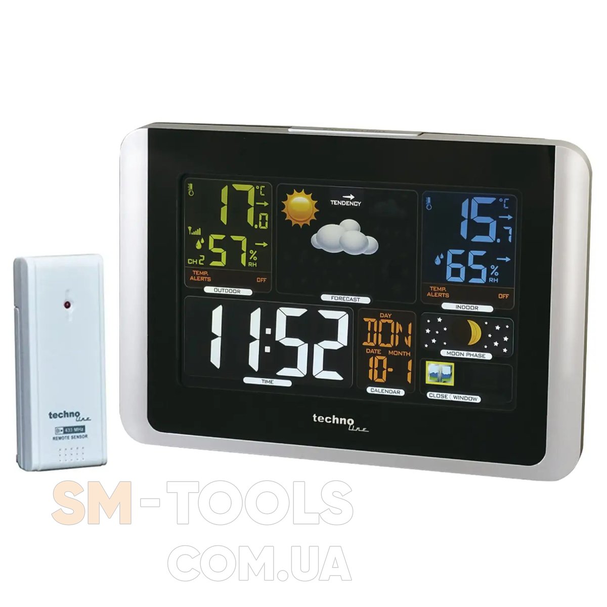 - Можливість прийому і відображення температури від 3-х зовнішніх датчиків (датчики обов'язково повинні бути з перемиканням каналів, два додаткових датчика купуються окремо)