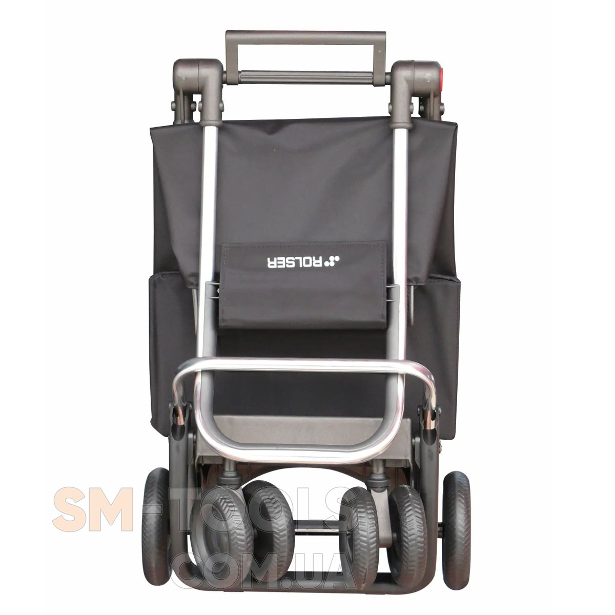 Алюмінієвий візок для покупок з 4 колесами (2 обертових). У двоколісному положенні, щоб тягнути, а коли завантажена штовхати у чотириколісному положенні. Це одне із багатьох технологічних досягнень Rolser. Включає систему коліс, що обертається, яка дозволяє вам керувати візком більш зручним і точним чином. Має подвійну систему складання; вперед для повного складання і назад, коли сумка заповнена для завантаження в будь-який багажник автомобіля, щоб ручка не потрапила в положення, необхідне виконання другого складання, клапан на шасі повинен бути від'єднаний. Оснащений пристроєм для підключення до супермаркету, щоб не залишати його на вході. Внутрішня частина рукоятки має пластикове оздоблення для комфортного транспортування сумки-візка в холодну пору року. Візок із незалежною сумкою, яка легко знімається. Тканина, що використовується, виробляється з переробленої бавовни в поєднанні з поліефірними волокнами з ПЕТ-пляшок. Ідеальна комбінація для досягнення 100% екологічності. Сумка зі знімною внутрішньою підкладкою, внутрішньою кишенею на блискавці, застібкою-карабіном та задньою кишенею. Горловина сумки закривається усередині стяжного шнура з фіксатором, а також додатково застібається зверху на металевий карабін. Верхній фіксатор сумки має прорізну кишеню на блискавці для дрібних речей. Сумка надійно кріпиться до шасі за допомогою липучки типу «Velcro». При необхідності її можна легко і швидко відстебнути і використовувати як повноцінну сумку, транспортуючи її за допомогою наплечного ременя. На дні сумки передбачено жорстке пластикове дно, яке під час пересування спирається на розкладену знизу основу візка.