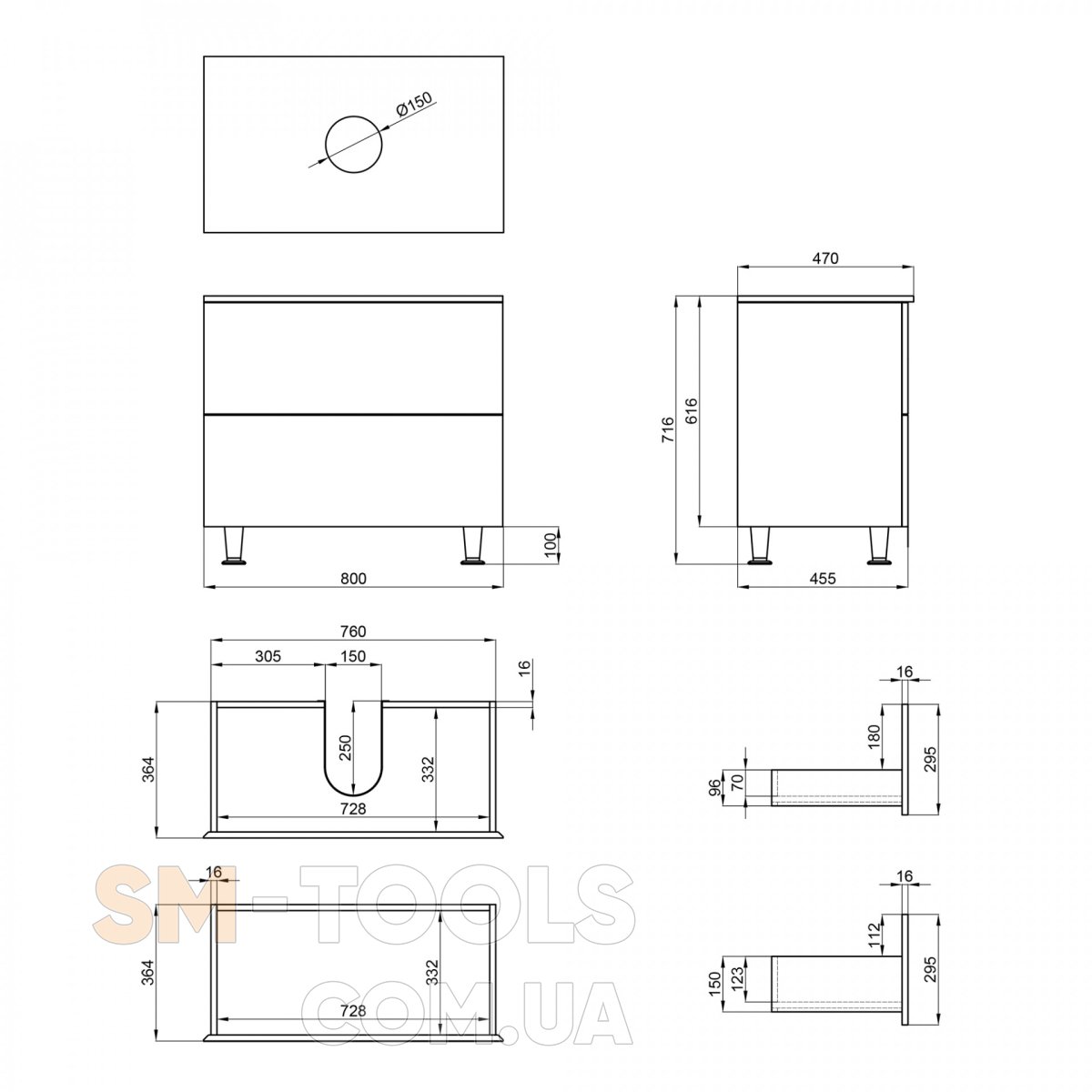 Комплектація Тумба підлогова Qtap Tern White зі стільницею QT1780TNL801W: