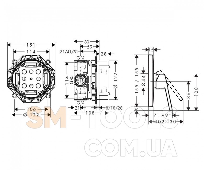 Характеристики Змішувач прихованого монтажу Hansgrohe Logis Loop 71267000+01800180: